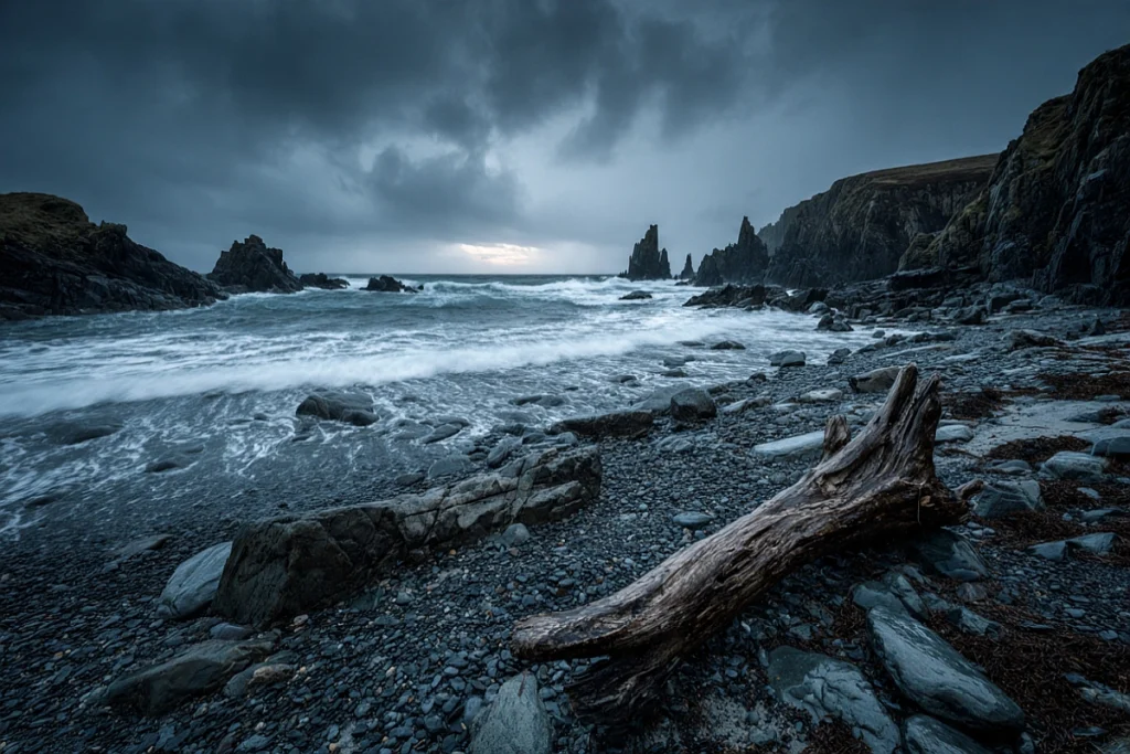 Olaf, Lauon und ihr kleiner Sohn stürzten ins eisige Wasser und klammerten sich verzweifelt an ein Stück Treibholz, das in der Nähe des sinkenden Schiffs trieb. Das Glück war ihnen hold: Die Wellen trugen das schiffbrüchige Trio sicher – wenn auch durchnässt – ans steinige Ufer von Lewis.